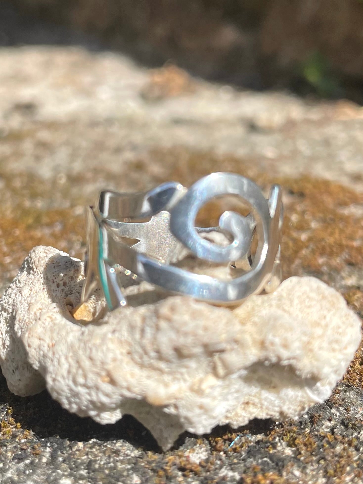 A new jewelry design in our Bobo collection, a spiral cut-out designed band in .925 silver. This is a lovely yet simple design, a perfect everyday wear piece.