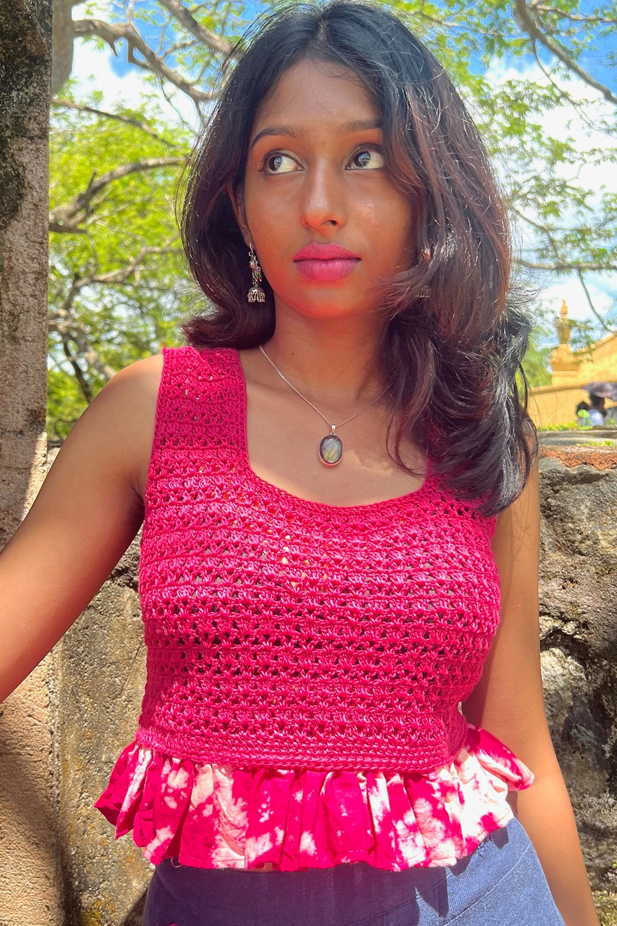 The Penelope Peplum Crochet Top - Small - Lanka Tropicana Collection