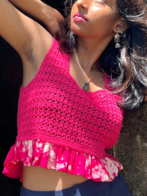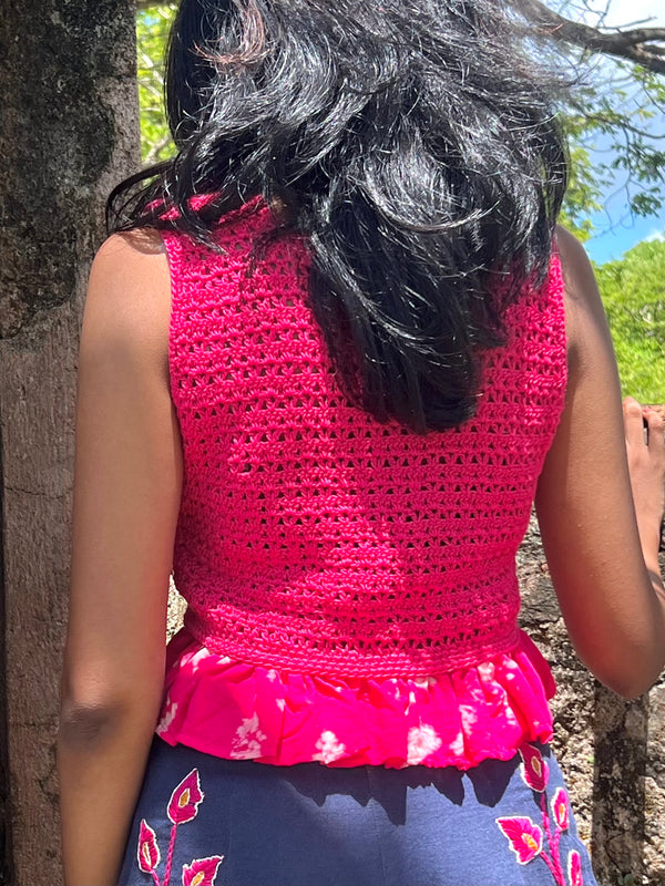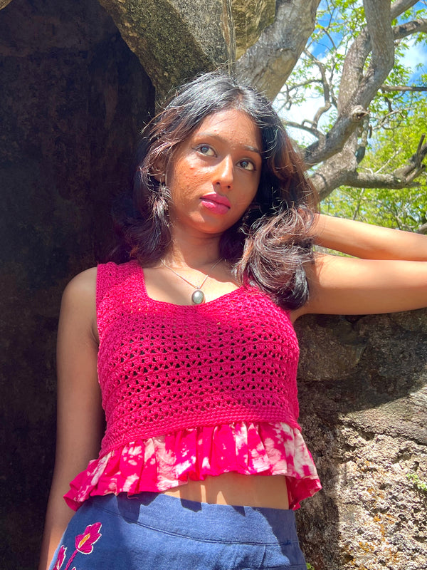 The Penelope Peplum Crochet Top - Small - Lanka Tropicana Collection