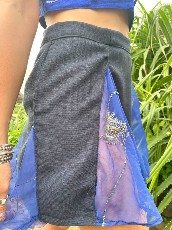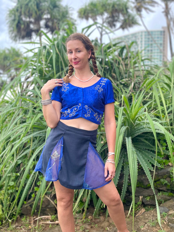The Deliah Skirt - Lanka Tropicana & Up-Cycled Collection What a fabulous skirt we made; edgy, sexy and smart. The Deliah skirt is an up-cycled creation made from a skirt and a dress. We took the bottom of an elegant...