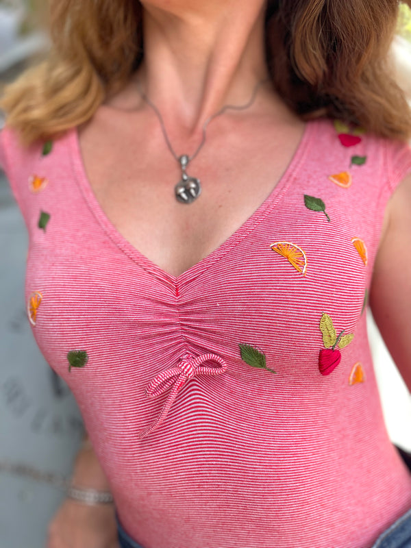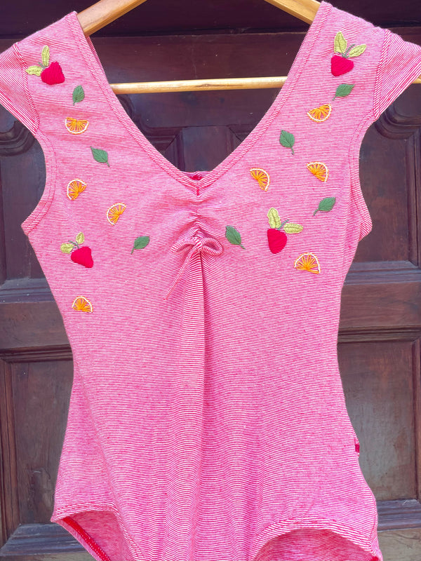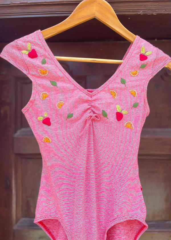 Vintage Bodysuit With Shakira Hand Embroidery - Up-Cycled Collection Deliciously adorable you could just eat it right up! How much do you love hand embroidered little fruits? I do, I think they are so fun, and that’s why we chose this...