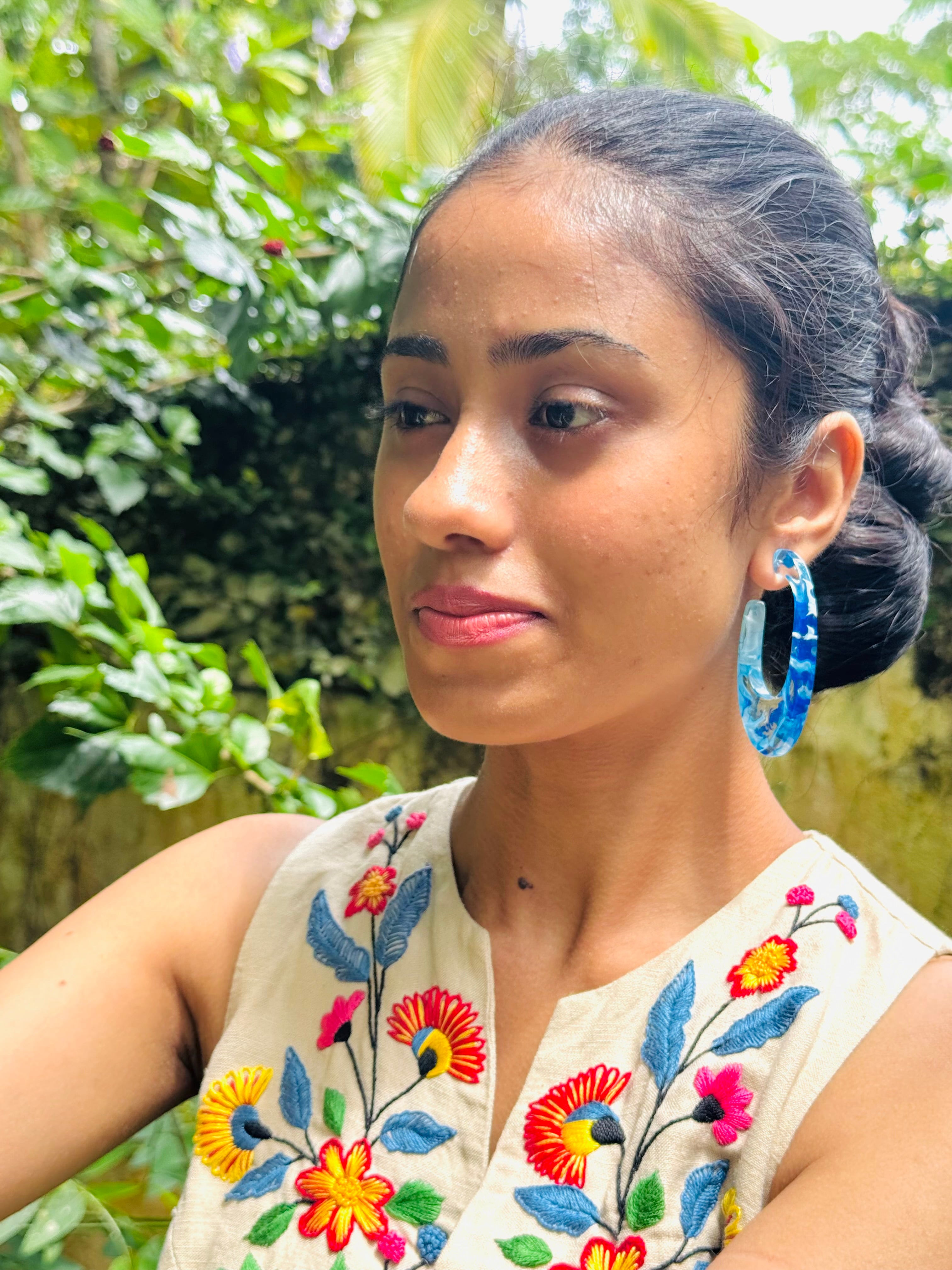 Obsessed with these tropical hoops that remind us of waves crashing. These hoops come from our eco-resin collection, made in a fair trade chain of production with an eco-friendly resin.